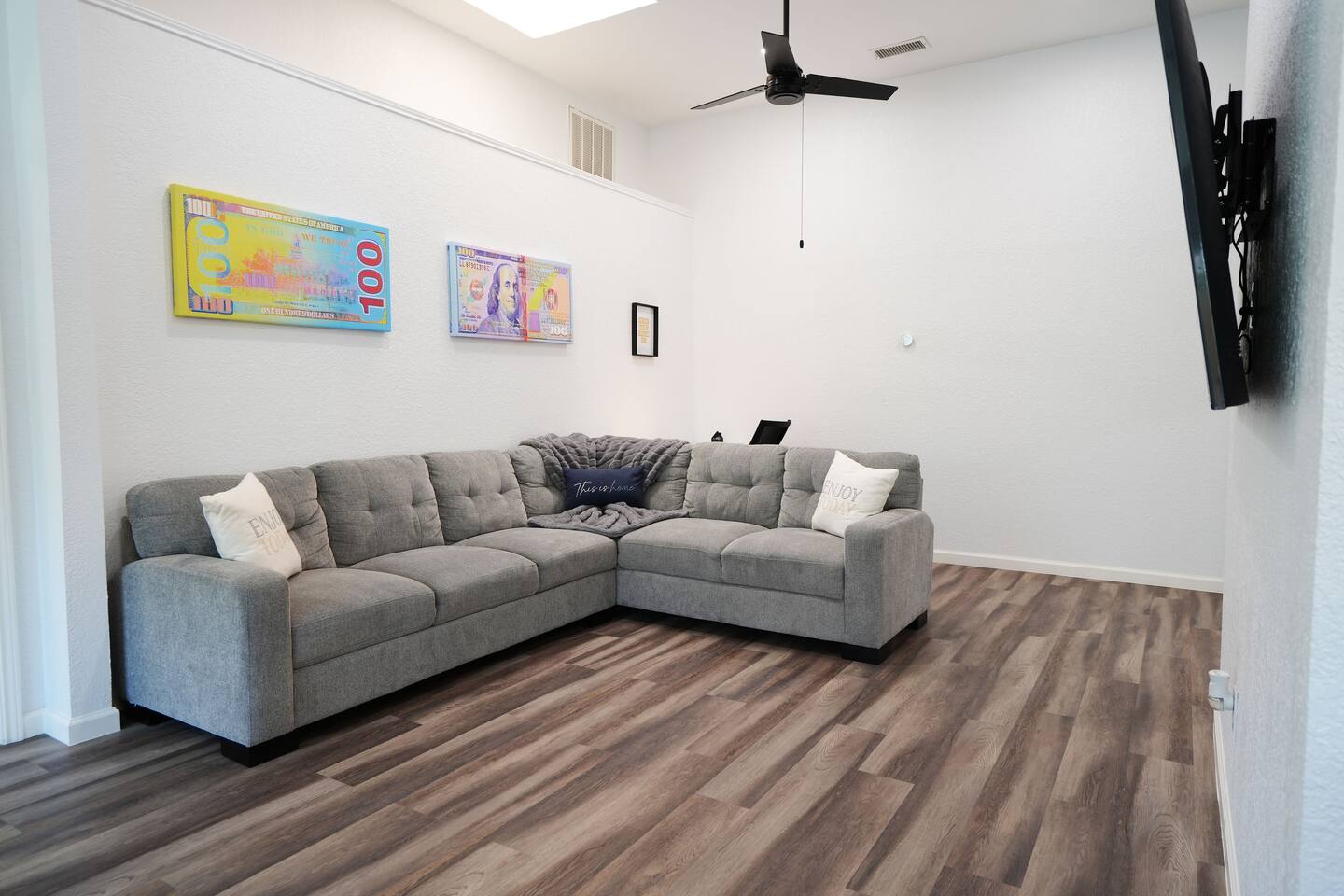 ☆ We are 2-year Superhosts and always striving for 5-star service! ☆ SINGLE STORY - 1543 Sq Ft Modern Home ☆ Cul-de-Sac home ☆ Private, Heated Jacuzzi ☆ Easy Self Check-in w/ Keypad ☆ Private, Fully Fenced Backyard ☆ 65” HDTV Smart TV/ Netflix, Hulu, Prime Video, Disney+ and more (just log in) ☆ HDTV's in Every Bedroom! ☆ Fast Wifi (495 Mpbs) ☆ High Ceilings ☆ 3 Queen Size Bed/2 Full Bathrooms ☆ Custom Guidebook w/ Local Recommendations and Tips ☆ Clear Host Communication ☆ Sparkling Clean Home