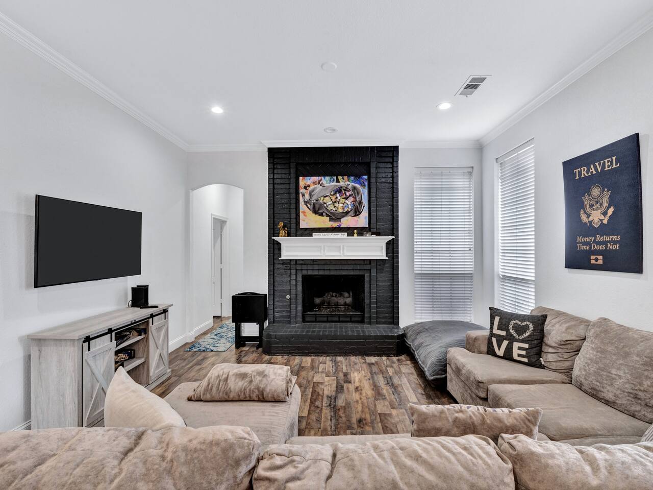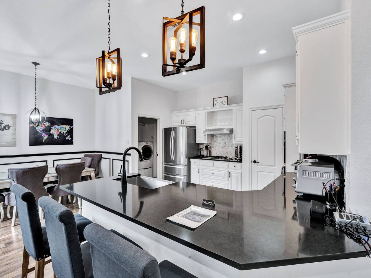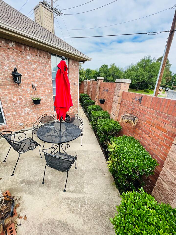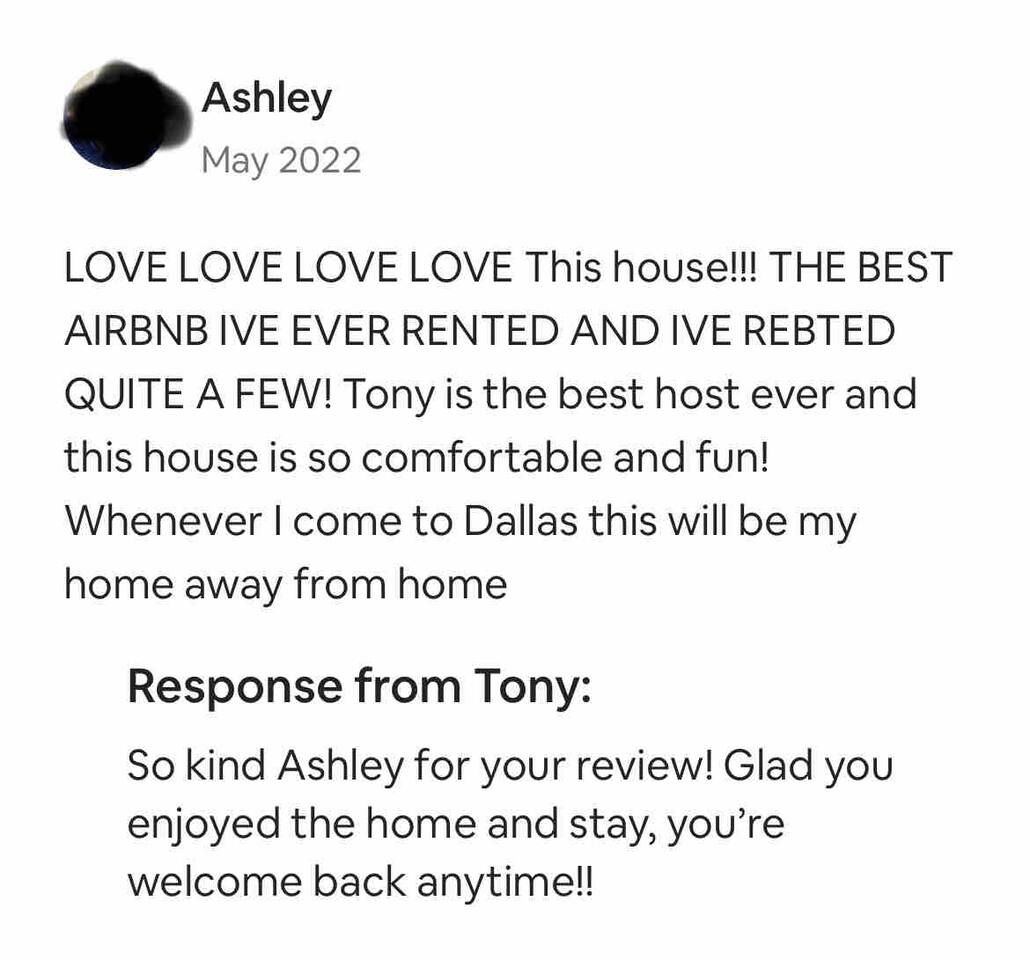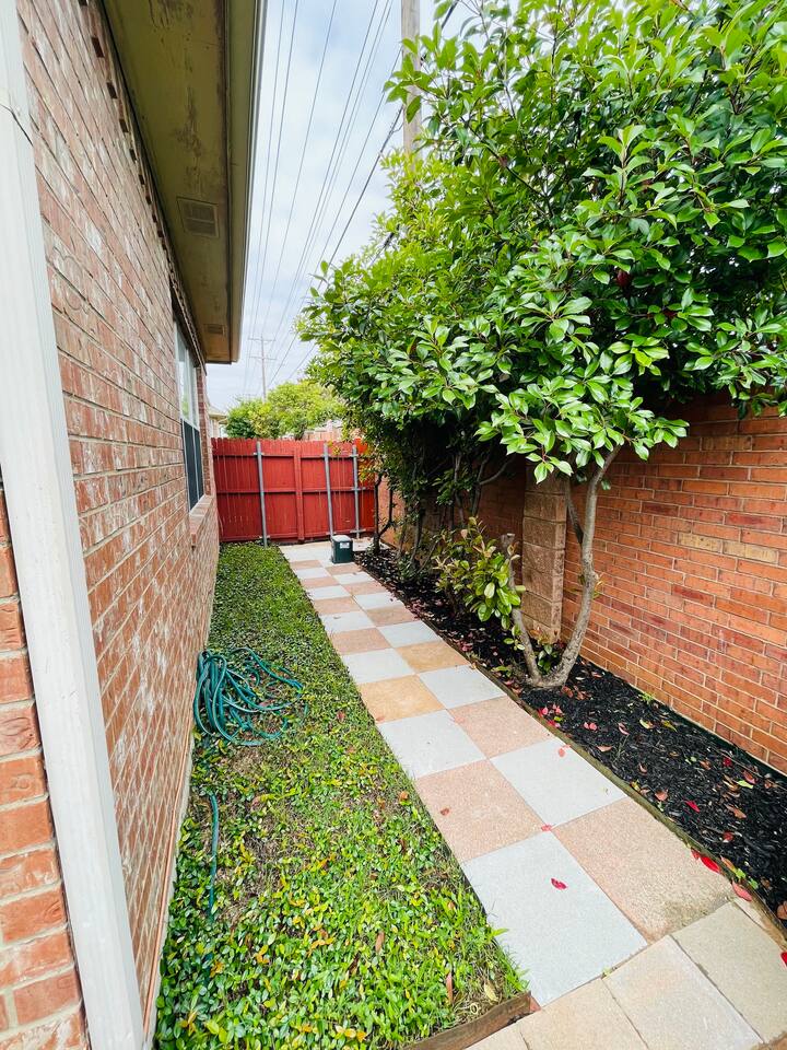 About the Home: This modern, new construction, single-family house offers new amenities, appliances and features. Stay in a peaceful and clean abode with the entire place to yourself - the perfect retreat after a day of exploring Dallas or enjoy home! Home Layout: Single story home! Open layout living room/kitchen, guest full bath, and a private fully fenced backyard. Master room is an en suite with shower and large tub. Unfortunately there's NO access to garage due to thats where we keep our personal items. Sleeping Arrangements: ☆ Primary Bedroom - Comfy, Queen Foam Mattress Mattress (Sleeps 2) ☆ Second Bedroom - Queen Memory Foam Mattress (Sleeps 2) ☆ Third Bedroom - Queen Memory Foam Mattress (Sleeps 2) ☆ Air Mattress (When requested) ☆ 1 Pack-N-Play Crib (When requested) Guest access Car rental or Uber/Lyft is recommended. The home's location provides amazing access to major highways for events and attractions! ► 15 miles to DFW Intl Airport ► 20 min to Cowboy Stadium / Range Stadium ► 20 min to Six Flags ► 20 min to downtown Fort Worth ► 25 miles to downtown Dallas ► 30 min to Love Field Airport There is plenty of parking in driveway in front of house. An additional car can also fit on the long, private driveway, plus free street parking. Other things to note FAQ's ► Is luggage drop-off allowed for early arrivals or late departures? - Yes when available. Luggage can be dropped off one hour before check-in (3:00pm). Please make sure to ask before showing up to ensure its available. ► Early check-in? - Unfortunately, our home is in high demand! Our cleaning team needs adequate time to clean and prepare the house for y'all so Early Check-In varies. Please ask and we will do everything possible to accommodate but fee may apply, otherwise check-in is 3pm ► Late check-out? - Due to high demand, our cleaning team needs the time to clean and prepare the house for the next guests. If you require late check out, it is $50 per hour after 11am, due to cleaning crew needs to bring in extra personal with late check out. Please request in advance, thank you ► Are there coffee shops or restaurants nearby? - Yes! There are several chain restaurants 3-5 min drive but there’s also Texan local places, short 5-8 minute drive. Recommend Old West for breakfast / brunch. ► Can I book on behalf of a friend, family member or co-worker? - While we would love to host whoever you are booking for, we do need them to book for themselves with their own Airbnb account. You can potentially earn travel credit by referring someone to book their first reservation with Airbnb. Go to Account Settings and click on "Invite Friends" for more details.