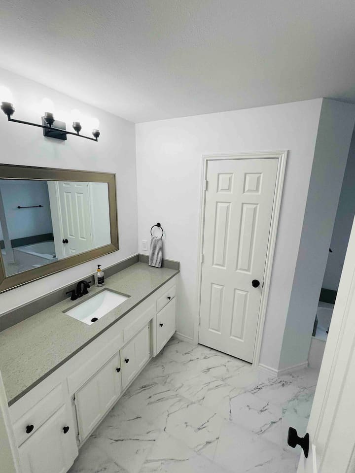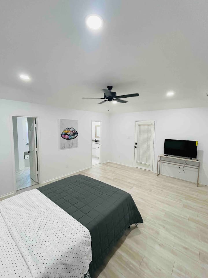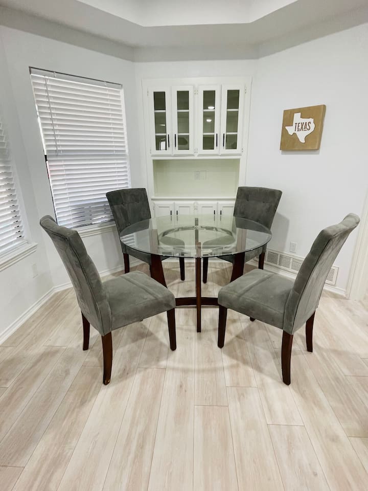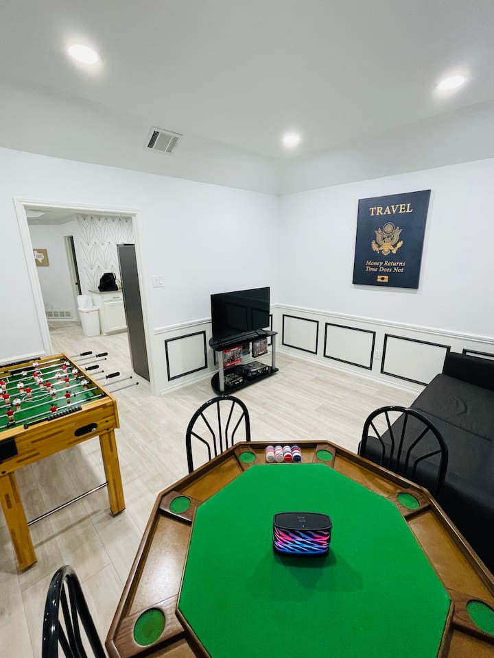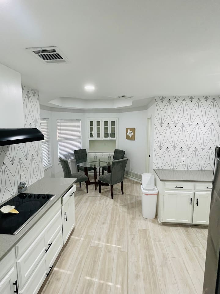 About the Home: Heated Pool and Spa! This modern, new construction, single-family house offers new amenities, appliances and features. Stay in a peaceful and clean abode with the entire place to yourself - the perfect retreat after a day of exploring Dallas or enjoy home! VERY IMPORTANT: There's a $100 PER DAY CHARGE to warm up Pool, no exceptions due to cost to heat up pool. NO EXCEPTIONS - NO CHARGE FOR SPA Home Layout: Single story home! Open layout living room/kitchen, guest full bath, and a private fully fenced backyard. Master room is an en suite with shower and large tub! Every bedroom has its own Smart TV. Unfortunately there's NO access to garage due to thats where we keep our personal items. Sleeping Arrangements: ☆ Primary Bedroom - Comfy, Queen Foam Mattress Mattress (Sleeps 2) ☆ Second Bedroom - Queen Memory Foam Mattress (Sleeps 2) ☆ Third Bedroom - Queen Memory Foam Mattress (Sleeps 2) ☆ Air Mattress (When requested) ☆ 1 Pack-N-Play Crib (When requested) Guest access Car rental or Uber/Lyft is recommended. The home's location provides amazing access to major highways for events and attractions! ► 15 miles to DFW Intl Airport ► 20 min to Cowboy Stadium / Range Stadium ► 20 min to Six Flags ► 20 min to downtown Fort Worth ► 25 miles to downtown Dallas ► 30 min to Love Field Airport There is plenty of parking in driveway in front of house. An additional car can also fit on the long, private driveway, plus free street parking. Other things to note FAQ's ► Is luggage drop-off allowed for early arrivals or late departures? - Yes when available. Luggage can be dropped off one hour before check-in (3:00pm). Please make sure to ask before showing up to ensure its available. ► Early check-in? - Unfortunately, our home is in high demand! Our cleaning team needs adequate time to clean and prepare the house for y'all so Early Check-In varies. Please ask and we will do everything possible to accommodate but fee may apply, otherwise check-in is 3pm ► Late check-out? - Due to high demand, our cleaning team needs the time to clean and prepare the house for the next guests. If you require late check out, it is $50 per hour after 11am, due to cleaning crew needs to bring in extra personal with late check out. Please request in advance, thank you ► Are there coffee shops or restaurants nearby? - Yes! There are several chain restaurants 3-5 min drive but there’s also Texan local places, short 5-8 minute drive. Recommend Old West for breakfast / brunch. ► Can I book on behalf of a friend, family member or co-worker? - While we would love to host whoever you are booking for, we do need them to book for themselves with their own Airbnb account. You can potentially earn travel credit by referring someone to book their first reservation with Airbnb. Go to Account Settings and click on "Invite Friends" for more details.